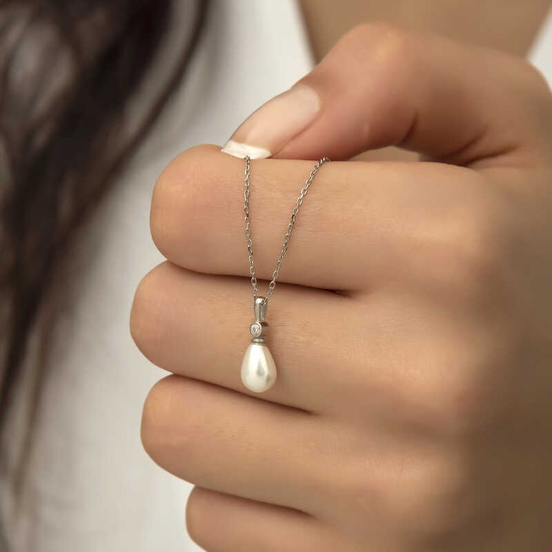 Gümüş Damla İnci Bayan Kolye