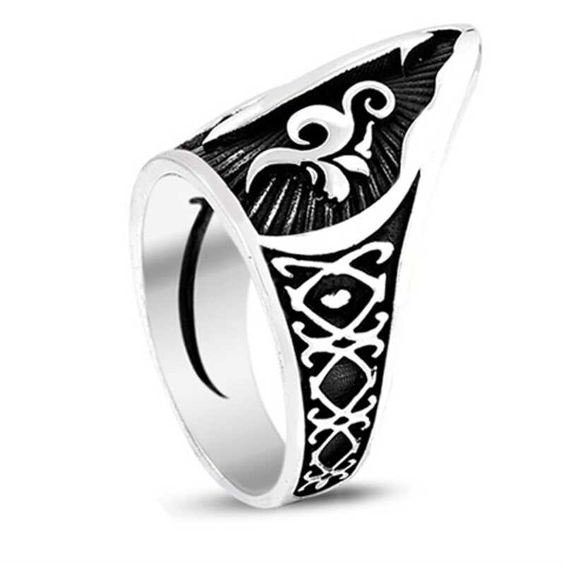 Gümüş Elif Motifli Başparmak Erkek Yüzük