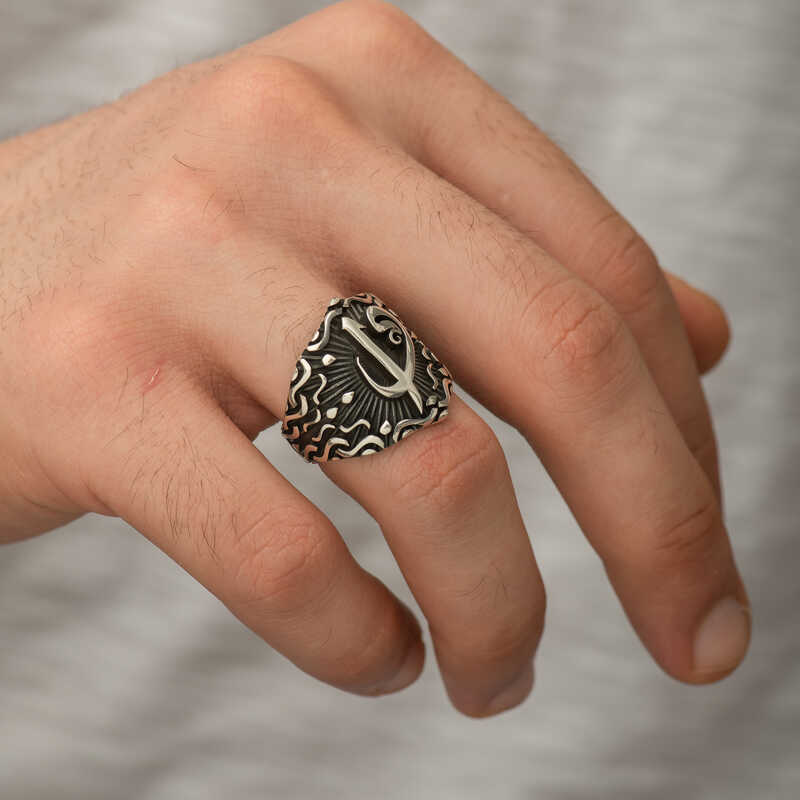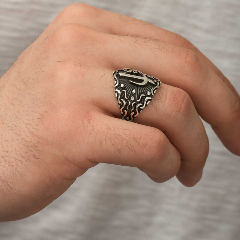 Her harfin sembolik bir anlamı vardır, tıpkı sayılar gibi… Allah"ın adı elif ile başladığı için diğer harfler gibi elif harfine soldan bir harf eklenemez. Allah"ın bir ve tek olduğunu simgelemektedir. Vav harfi ise anne karnında cenin pozisyonundaki bir kulu ve secdeye varan edepli bir kul anlamına gelir. Bu iki harf ve anlam beraber kullanılır. Vav gibi olmalı ilk yaradana bükülmeli, kulluk etmeyi bilmeli. Başlangıcımız vav gibi olmalı ilerleyişimiz elif gibi olmalı. Bu derin ve güzel anlamlardan yola çıkarak tasarladığımız elif vav erkek yüzüğü; kendinize ya da sevdiklerinize doğum gününde, babalar gününde ve özel günlerde tercih edebilirsiniz. Bu şık yüzük 925 ayar gümüşten imal edilmiştir. Gümüş üzerine oksit kaplama yapılmıştır. Oksit kaplama yapılan yüzükler parlaklığını uzun süre muhafaza eder. Tüm erkek yüzüklerde olduğu gibi gümüş elif vav erkek yüzük de el emeği ile üretilmiştir. Gümüş ve değerli taşlar nedeniyle ürün ağırlığında ± %10 sapma olabilmektedir.