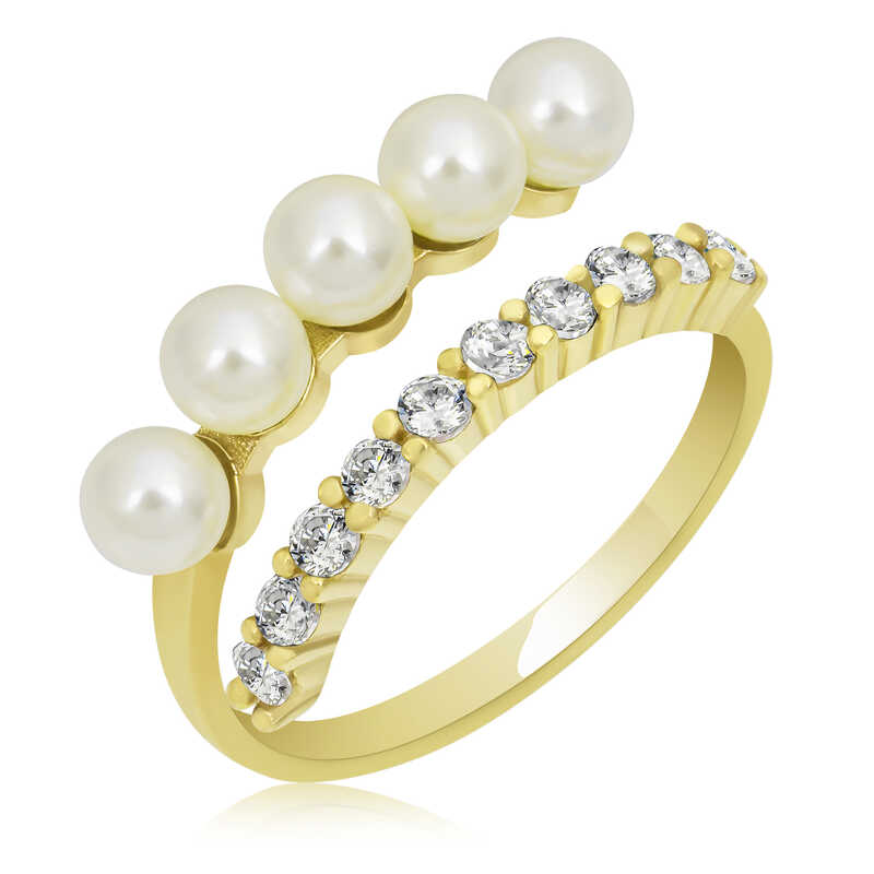 Gümüş Gold Ayarlanabilir İnci Taşlı Kadın Yüzük