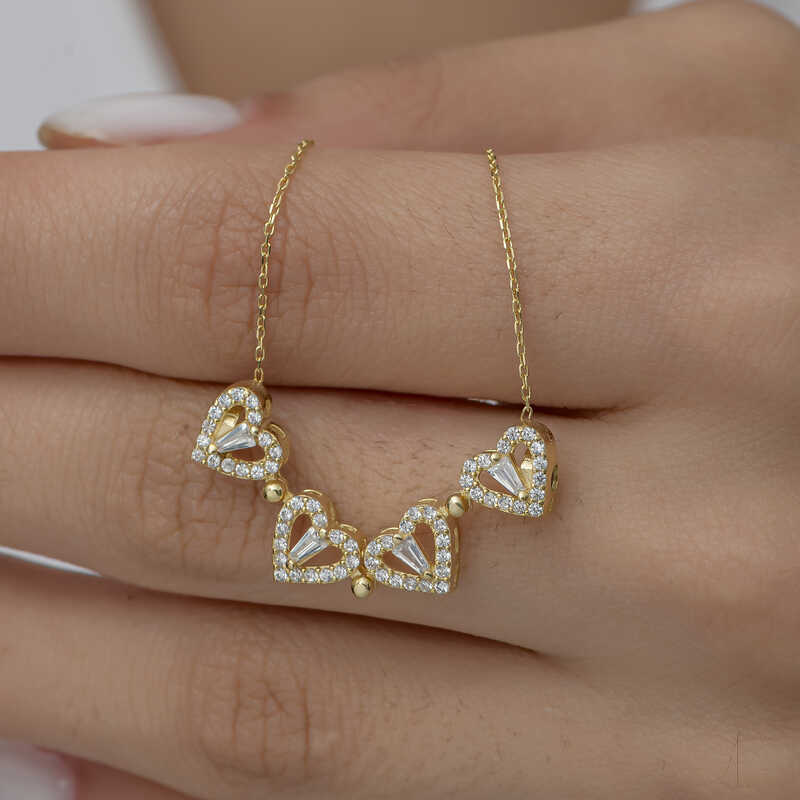 Gümüş Gold Kalpli Açılabilen Yonca Kadın Kolye