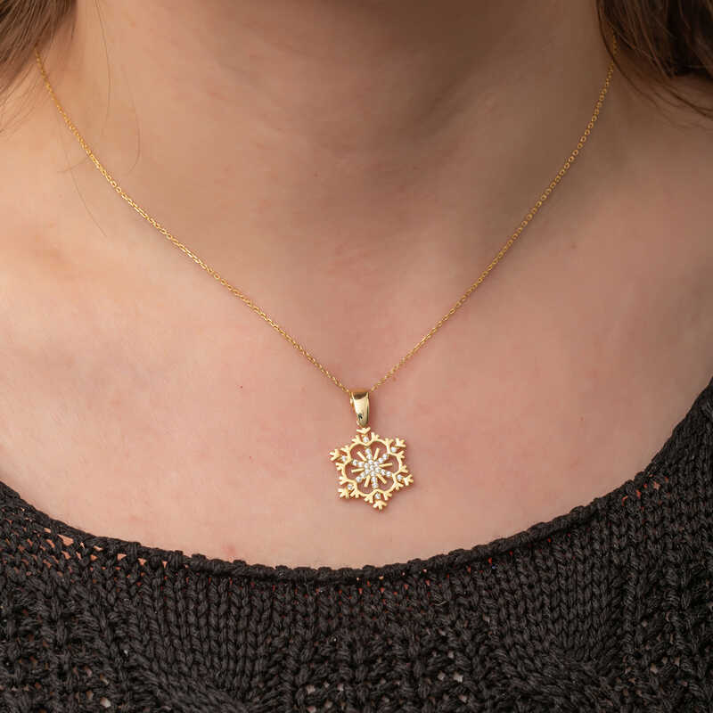Gümüş Gold Kar Tanesi Kadın Kolye