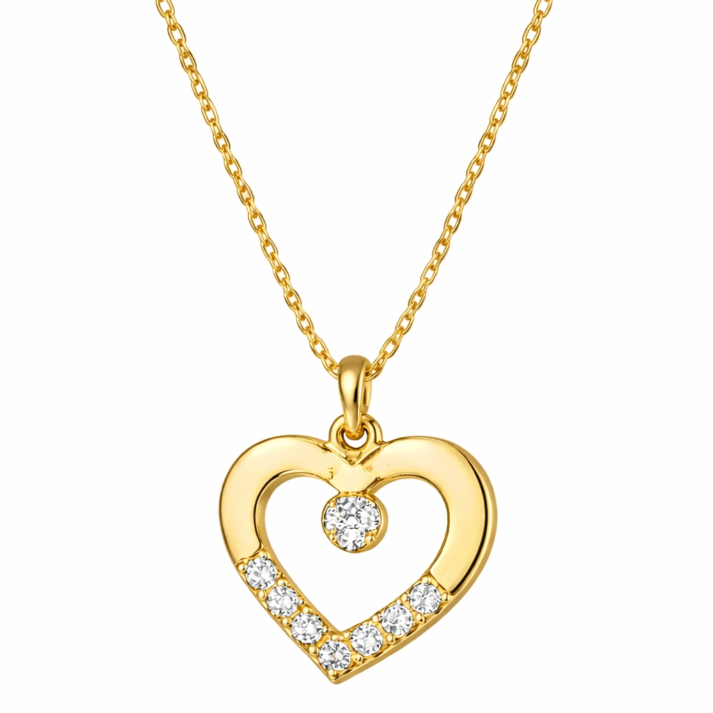 Romantik kalp tasarımı ve tektaş ışıltısıyla öne çıkan 925 ayar gümüş gold kaplama minik kalpli kadın kolye, günlük kullanıma ve özel gün kombinlerine şık bir dokunuş katar.