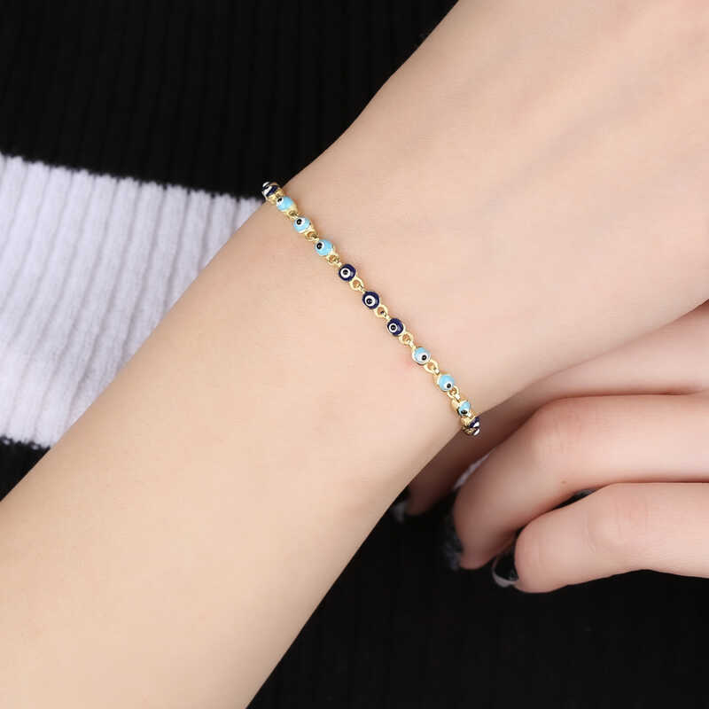 ​Gümüş Gold Nazar Boncuklu Bileklik