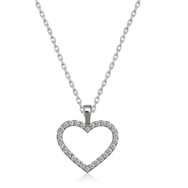 Gümüş Kalp Bayan Kolye Kalpli Kolyeler Gümüş Kalp Bayan Kolye Kalp deseninin hepsi taşlı olan bu harika tasarım kalp kolye modeli 925 ayar gümüşten imal edilmiştir. Kalp tasarımlı kolyeler aşkı çağrı