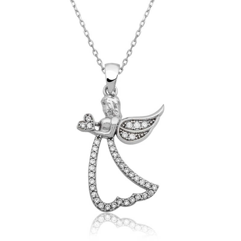 Gümüş Kanatlı melek motifi ile tasarlanmış bu bayan kolye modeli 925 ayar gümüşten imal edilmiştir. Gümüş üzerinde bulunan taşlar zirkondur. Gümüş kanatlı melek bayan kolye üzerinde rodyum kaplama yapılmıştır. Rodyum kaplama yapılan tüm gümüş bayan kolye modelleri parlaklığını uzun süre muhafaza eder. Uzunluğu 45 cm olan gümüş zincir ile gönderilir. Tüm gümüş bayan kolye modellerinde olduğu gibi gümüş melek bayan kolye modelimiz de el emeği ile üretilmiştir. Gümüş ve değerli taşlar nedeniyle belirtilen ürün ağırlığında ± %10 sapma olabilmektedir.a