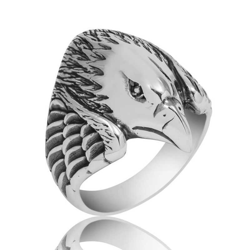 Kuşların kralı olan ve savaşmak üzere dünyaya inen kartal, özellikle savaşçı ve güçlü olmasıyla tanınır; bu yüzden pek çok ulusun sembolü olmuştur. Bu derin anlamdan esinlenerek oluşturulan kartal erkek yüzük; kendinize yada sevdiklerinize doğum gününde, babalar gününde yada özel günlerde hediye edebilirsiniz. Bu şık erkek yüzük 925 ayar gümüşten imal edilmiştir. Gümüş üzerine oksit kaplama yapılmıştır. Oksit kaplama yapılan yüzükler parlaklığını uzun süre muhafaza eder. Tüm erkek yüzüklerde olduğu gibi gümüş kartal erkek yüzük modeli de tamamen el emeği ile üretilmiştir. Gümüş ve değerli taşlar nedeniyle belirtilen ortalama ürün ağırlığında ± %10 sapma olabilmektedir.