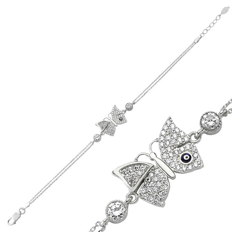 Özgürlüğü masumiyeti ve saflığı simgeleyen kelebekler, tertemiz sevginin ve aşkın ifadesidir. Bahar kelebekleri kolye anlam itibari ile aşkın küçük bir kıvılcım ile başladığı daha sonra büyük bir sabır ile büyüdüğü ve en sonunda ilan-ı aşkı ifade eder. Sizin olduğu kadar sevdiklerinizin de keyifle takacağı gümüş kelebek bayan bileklik en güzel hediyelerden biri olacaktır. Gümüş üzerine rose kaplama yapılmıştır. Rose kaplama yapılan gümüş bayan bileklik modelleri parlaklığını uzun süre muhafaza eder ve gümüşe pembe rengi verir. Üzerinde bulunan taşlar zirkondur. Tüm gümüş bayan bileklik modellerinde olduğu gibi gümüş kelebek bayan bileklik de el emeği ile üretilmiştir. Gümüş ve değerli taşlar nedeniyle belirtilen ürün ağırlığında ± %10 sapma olabilmektedir.