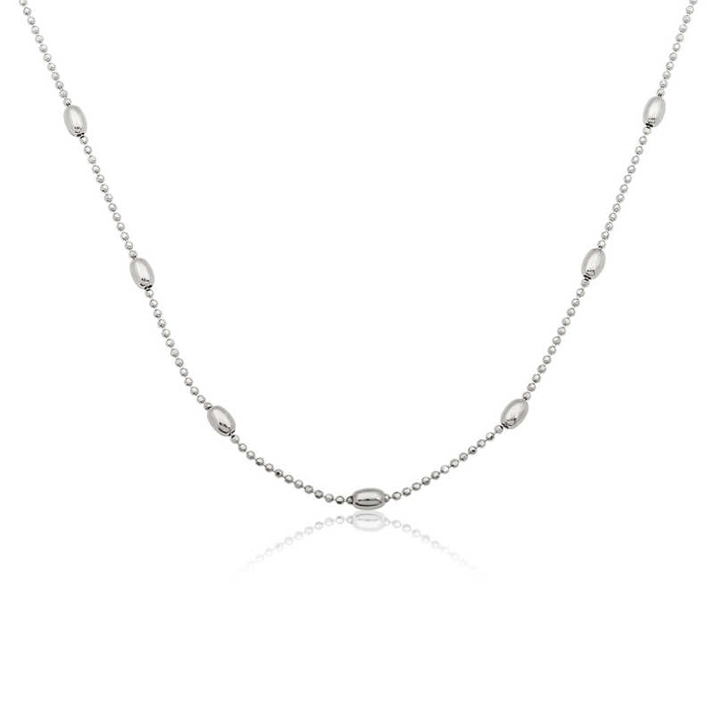 Gümüş Küçük Top ve Arpa Zincir İtalyan Zincirler Gümüş Küçük Top ve Arpa Zincir Bu şık zincir; 925 ayar gümüşten imal edilmiştir. Gümüş üzerine rodyum kaplama yapılmıştır. Rodyum kaplama yapılan baya