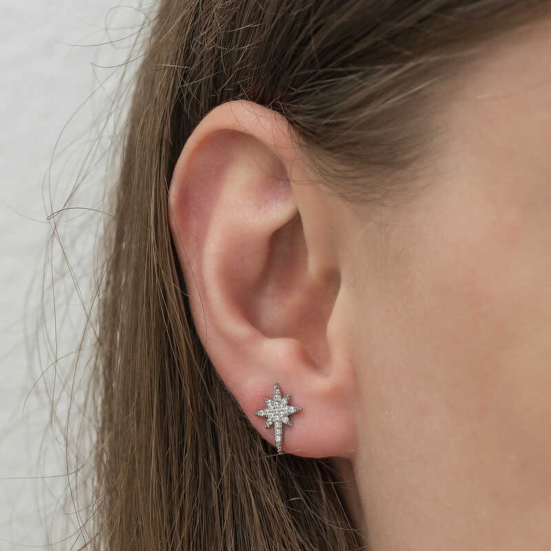 Gümüş Kutup Yıldızı Küpe Çivili Küpeler Gümüş Kutup Yıldızı Küpe Her yaştan kadının stiline uyum sağlayabilecek farklı küpe modellerinin yer aldığı koleksiyonumuzda birbirinden özgün tasarımlı küpe m