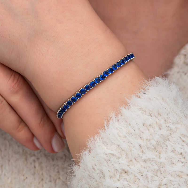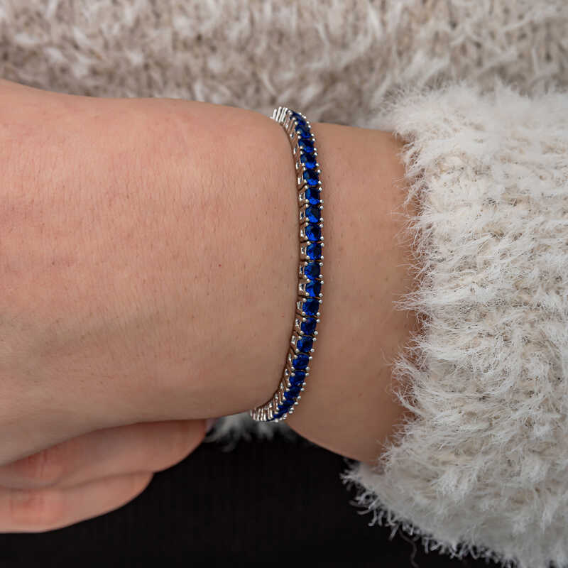 Gümüş Lacivert Zirkon Taşlı Su Yolu Kadın Bilekik