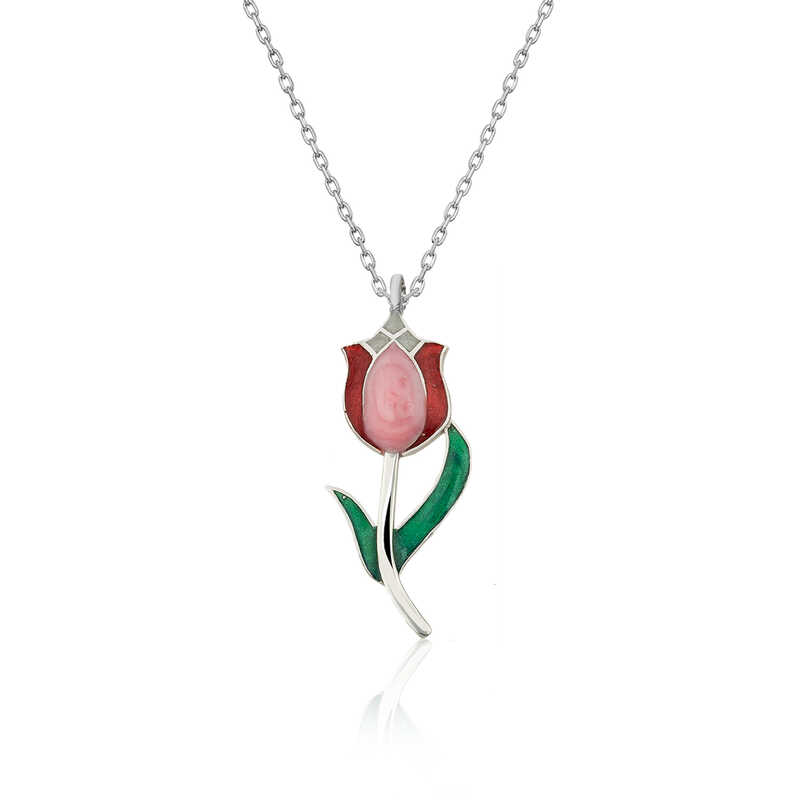 Gümüş Lale Bayan Kolye Lale Kolyeler Gümüş Lale Bayan Kolye Rengi ve şekli açısından sevgilinin yüzüne, yanağına, dudağına benzetilen ’Lale’, yine rengi dolayısıyla aşığın yanağına ve içindeki tomurcu