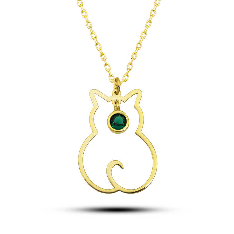 Gümüş Mayıs Ayı Doğum Taşı Kedi Kadın Kolye