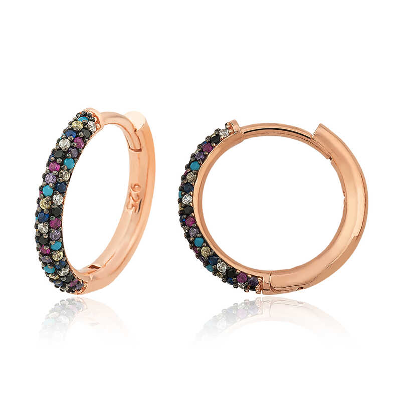 Gündelik hayatta ve özel günlerde şık tasarımı ile dikkat çeken bu küpeyi severek kullanacaksınız. Tüm bayanlara hitap eden, modası geçmeyecek olan gümüş mix halka bayan küpe sizleri bekliyor. Gümüş rose altın kaplama renkli taşlı halka bayan küpe; doğum günü hediyesi, sevgililer günü hediyesi veya annelere hediye olarak özel günlerde tercih edilebilecek mükemmel bir seçenektir. Gümüş küpe 925 ayar gümüşten imal edilmiştir. Gümüş üzerine rose altın kaplama yapılmıştır. Rose altın kaplama yapılan gümüş küpe modelleri parlaklığını uzun süre muhafaza eder ve oksitlenmesi gecikir. Tüm bayan küpelerde olduğu gibi bu küpe modeli de el emeği ile üretilmiştir. Gümüş ve değerli taşlar nedeniyle belirtilen ortalama ürün ağırlığında ± %10 sapma olabilmektedir.
