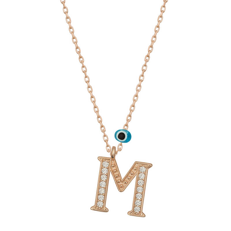Gümüş Nazar Rose M Harfi Kadın Kolye