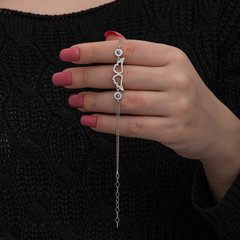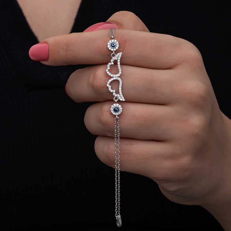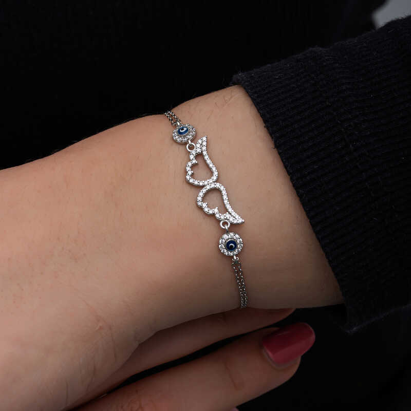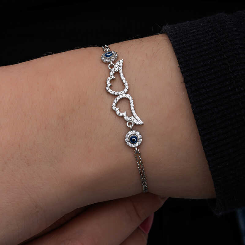 Gümüş Nazarlı Melek Kanadı Kadın Bileklik