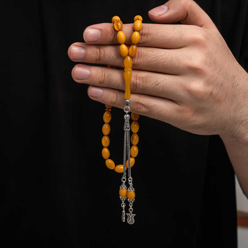 Gümüş Püskül Sıkma Kehribar Tesbih