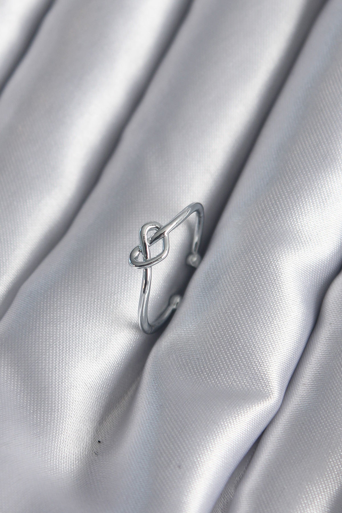 Gümüş Renk Düğüm Kalp Model Kadın Yüzük