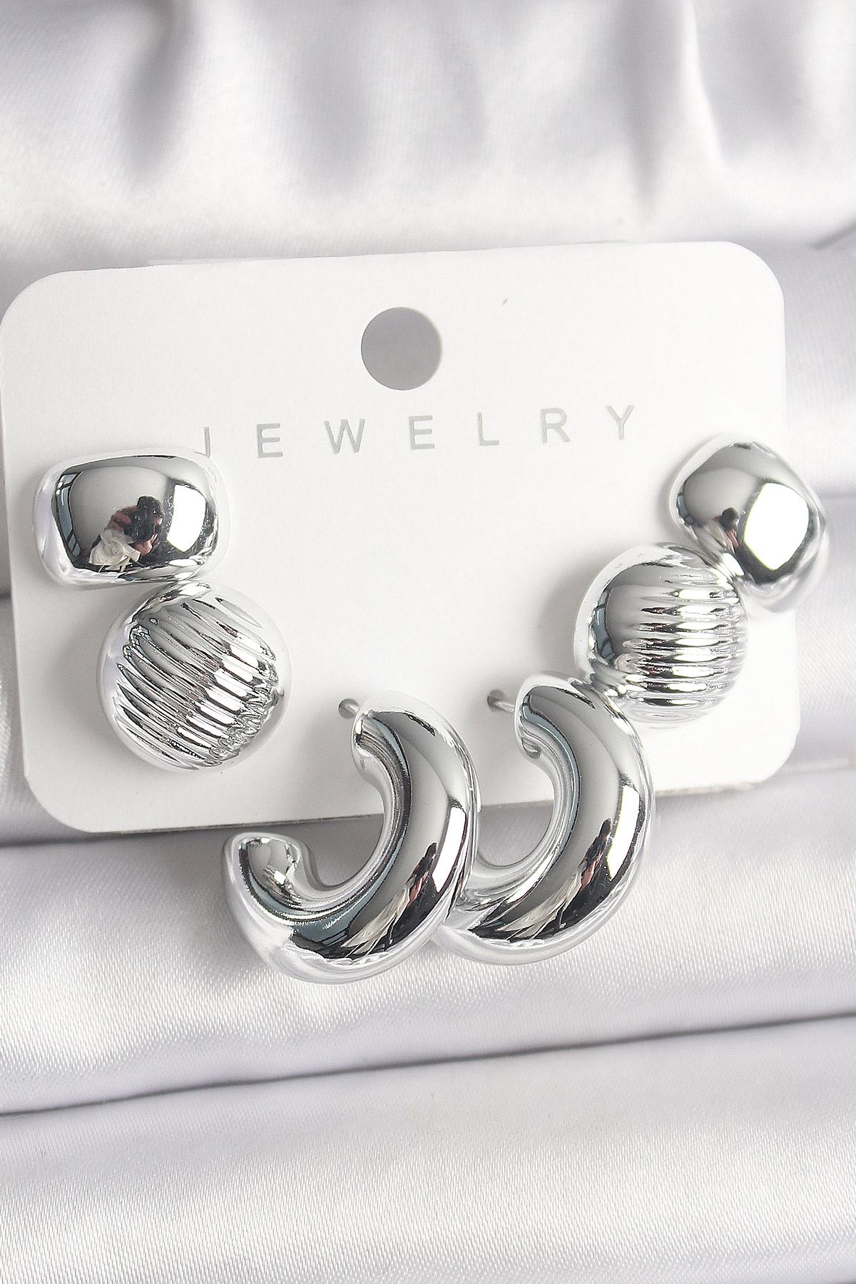 Gümüş Renk İşlemeli Daire Halka Model CCB Platik Kadın Küpe Seti