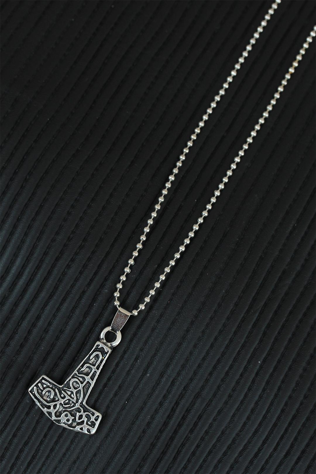 Gümüş Renk Metal Aksesuarlı Top Zincirli Erkek Kolye