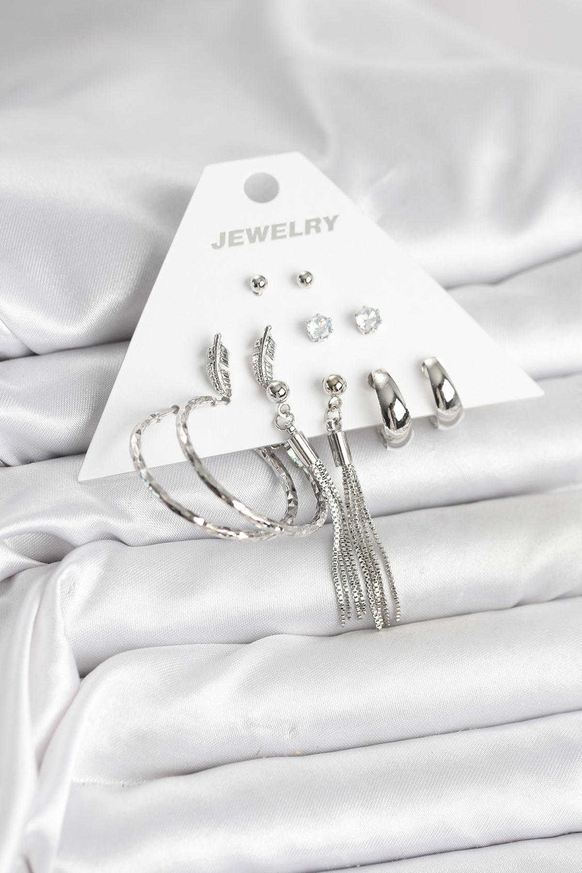 İlk yorum yapan sen ol “Gümüş Renk Pirinç 6 Çiftli Kadın Küpe Seti”