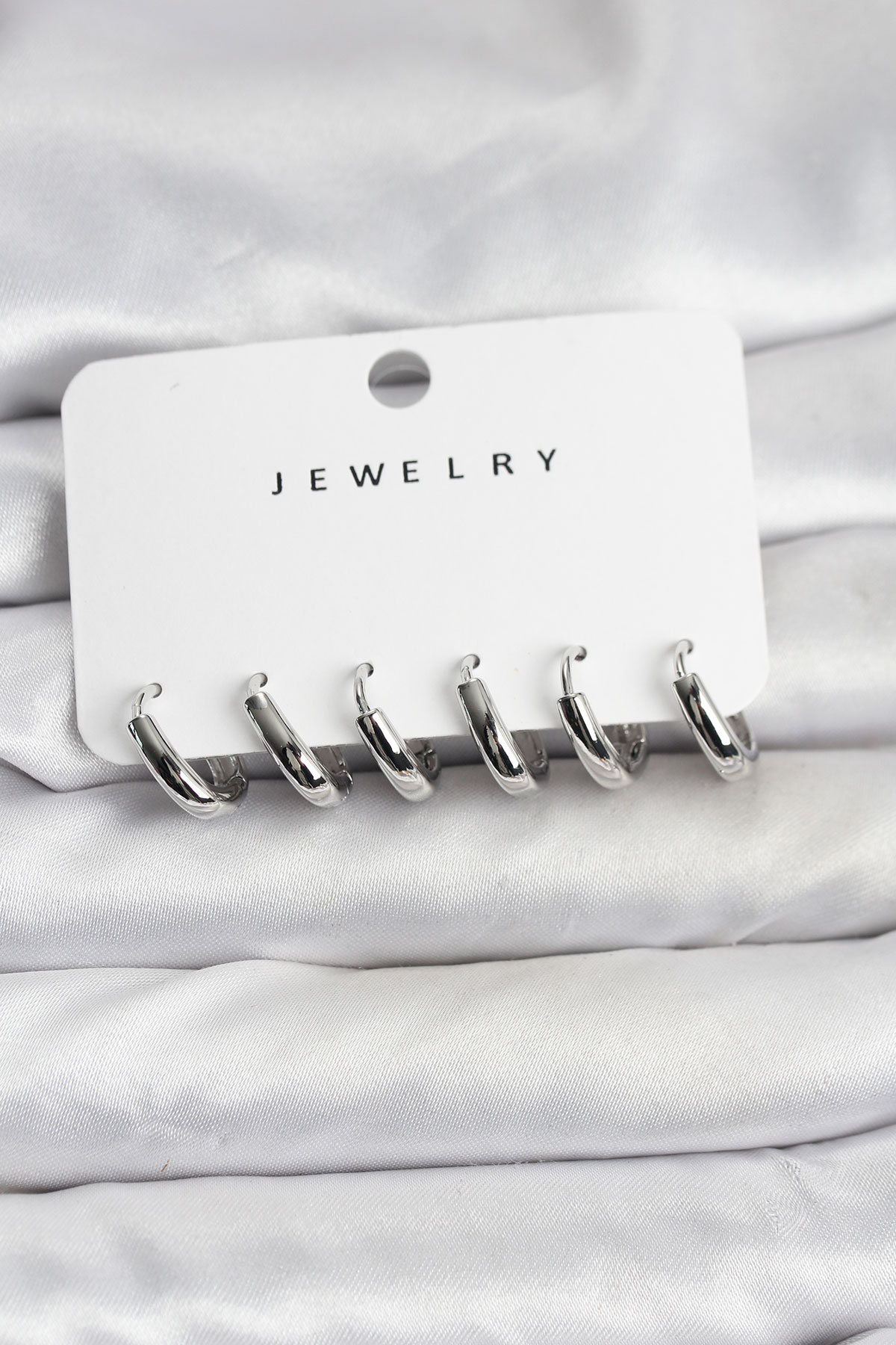 Gümüş Renk Pirinç Halka Kadın Küpe Seti