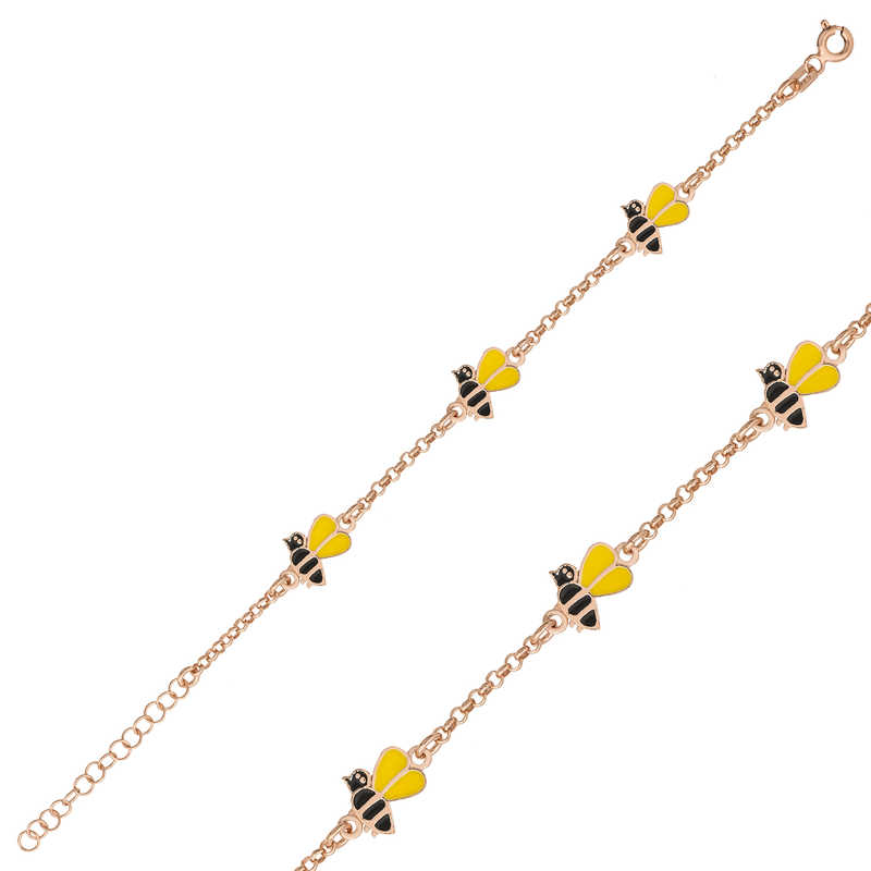 Gümüş Rose Arı Figürlü Çocuk Bileklik