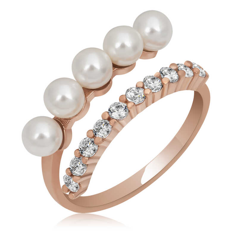 Gümüş Rose Ayarlanabilir İnci Taşlı Kadın Yüzük