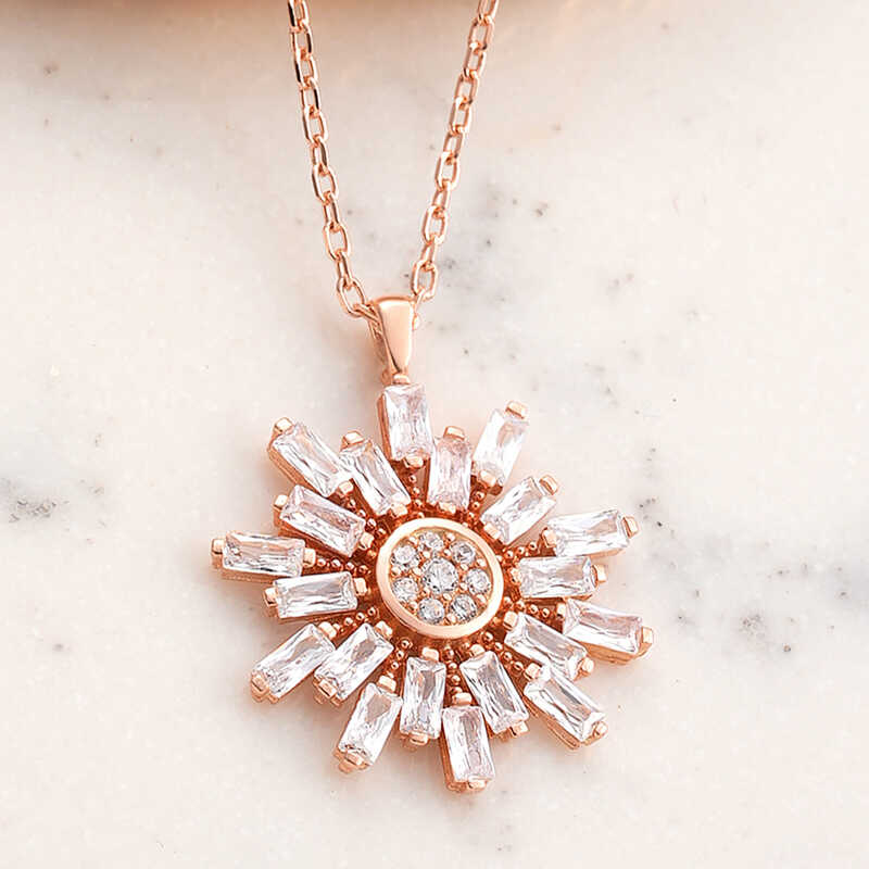 Gümüş Rose Baget Taşlı Kar Tanesi Kadın Kolye