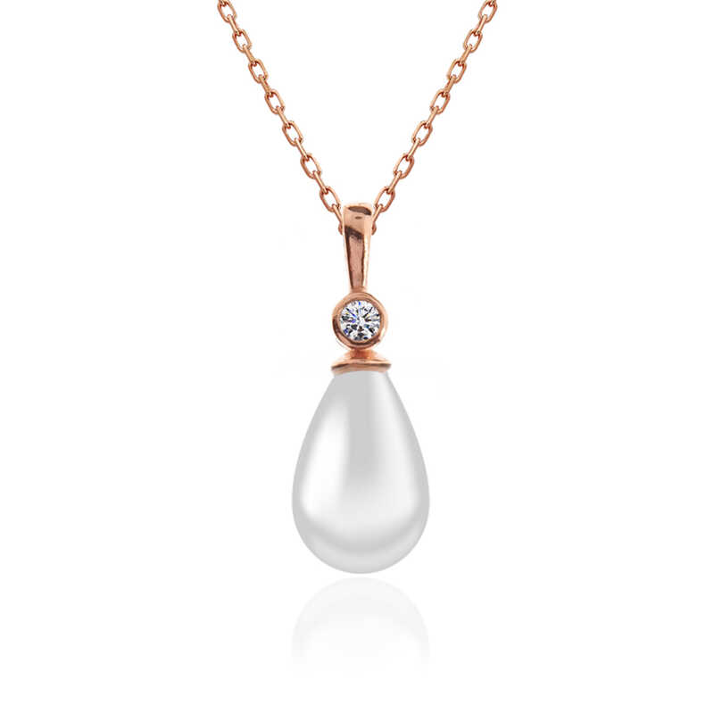 Gümüş Rose Damla Rose İnci Kadın Kolye
