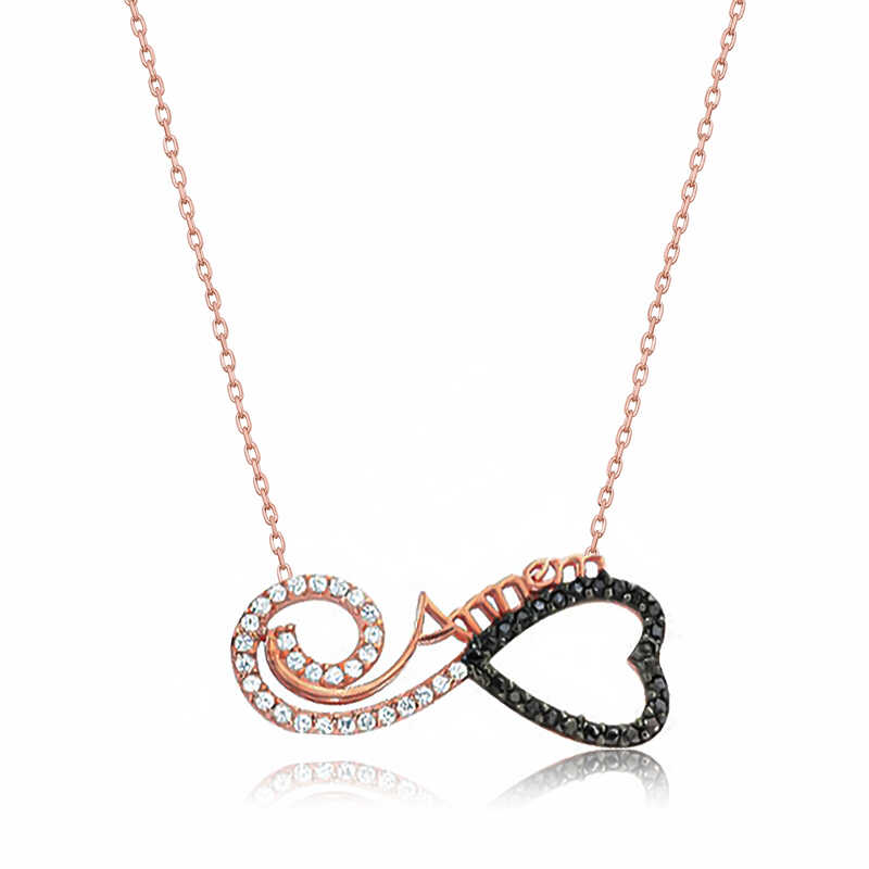 Gümüş Rose Kalpli Sonsuzluk Annem Kolye