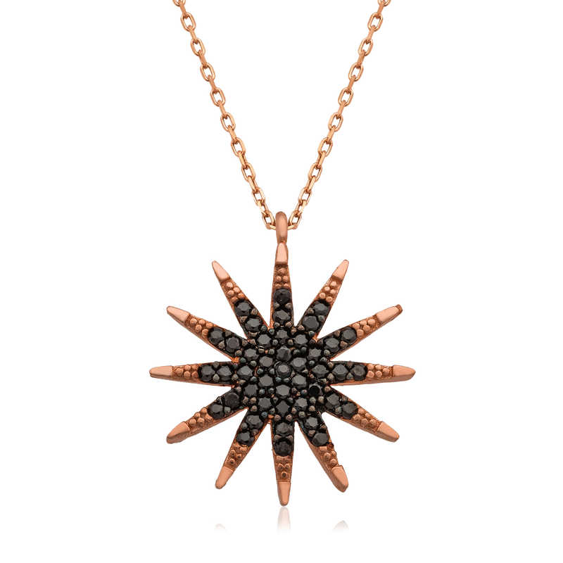 Genç ve dinamik bir çizgiye sahip olmak isteyenlerin tercih edeceği, siyah taşlı kutup yıldızı bayan kolye ile tarzınızı yansıtın. Sizin olduğu kadar sevdiklerinizin de keyifle takacağı bu gümüş kolye modeli sevdiğinize en güzel hediyelerden biri olacaktır. Siyah taşlı kutup yıldızı bayan kolye 925 ayar gümüşten imal edilmiştir. Gümüş üzerine rose altın kaplama yapılmıştır. Rose altın kaplama yapılan gümüş bayan kolye modelleri parlaklığını uzun süre muhafaza eder ve oksitlenmesi gecikir. Kolye üzerinde bulunan taşlar zirkondur. Gümüş olan zincir boyu ortalama 45 cm"dir. Bu zirkon taşlı kutup yıldızı bayan kolye diğer tüm gümüş bayan kolye modellerinde olduğu gibi el emeği ile üretilmiştir. Gümüş ve değerli taşlar nedeniyle belirtilen ürün ağırlığında ± %10 sapma olabilmektedir.