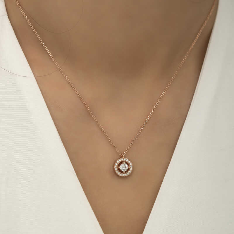 Gümüş Rose Minimal Yuvarlak Tektaş Bayan Kolye