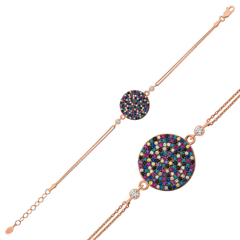 Gümüş Rose Renkli Taşlı Bayan Bileklik