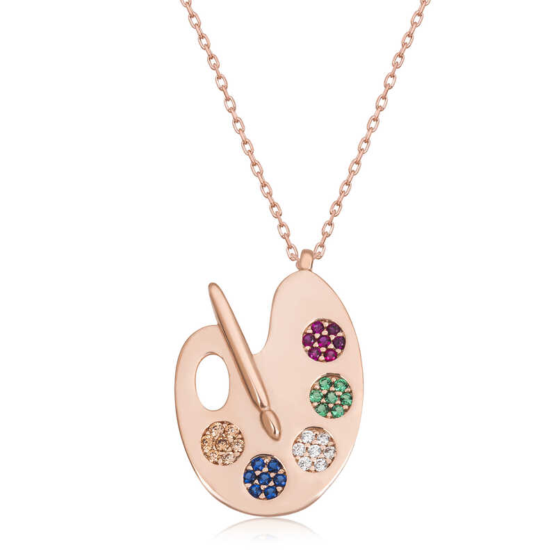İlk yorum yapan sen ol “Gümüş Rose Ressam Paleti Kadın Kolye”