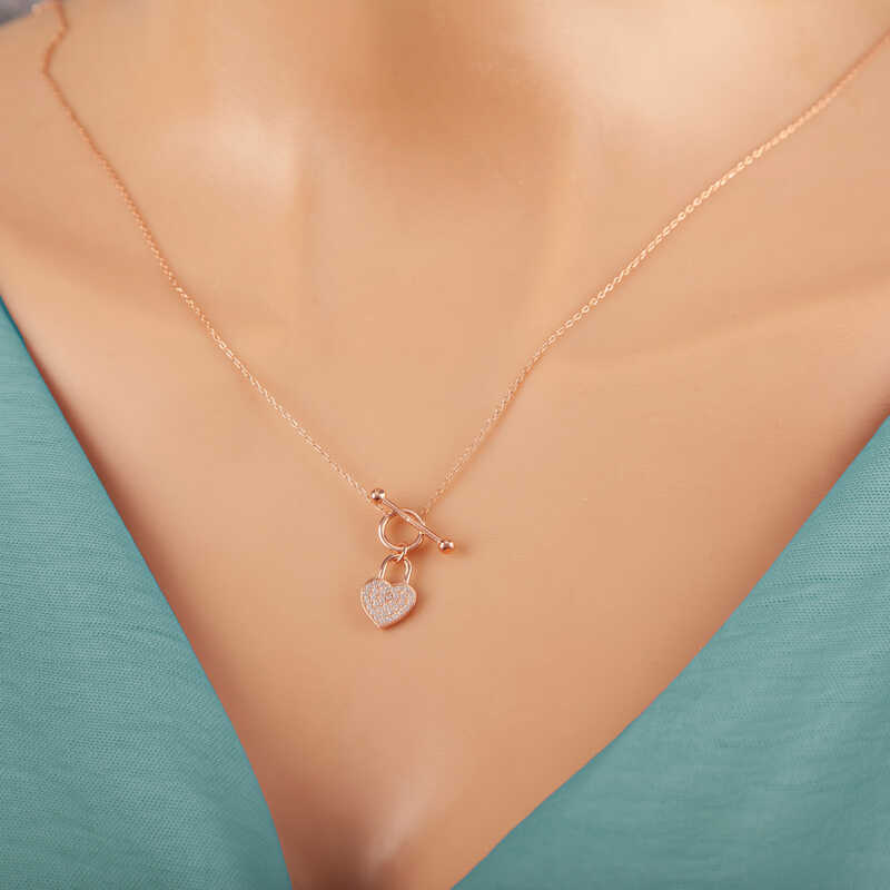 Kalp simgesi daima koşulsuz sevginin ve aşkın sembolü olmuştur. Dini öğretilerde ise kalbin gücü sınırsızdır. Çünkü kalp Yaradanın evi, bizim ise evrene açılan gerçeklik kapımızdır. Bu şık gümüş kalp kolye; doğum günü hediyesi, sevgililer günü hediyesi veya annelere hediye olarak özel günlerde tercih edilebilecek mükemmel bir seçenektir. Gümüş kalp kadın kolye 925 ayar gümüşten imal edilmiştir. Bu kolye üzerinde rose kaplama yapılmıştır. Rose kaplama yapılan gümüş kadın kolye modelleri parlaklığını uzun süre muhafaza eder. Üzerinde bulunan taşlar zirkondur. Tüm gümüş kadın kolye modellerimizde olduğu gibi gümüş sallantılı kalp kadın kolye modeli de el emeği ile üretilmiştir. Gümüş ve değerli taşlar nedeniyle belirtilen ortalama ürün ağırlığında ± %10 sapma olabilmektedir.
