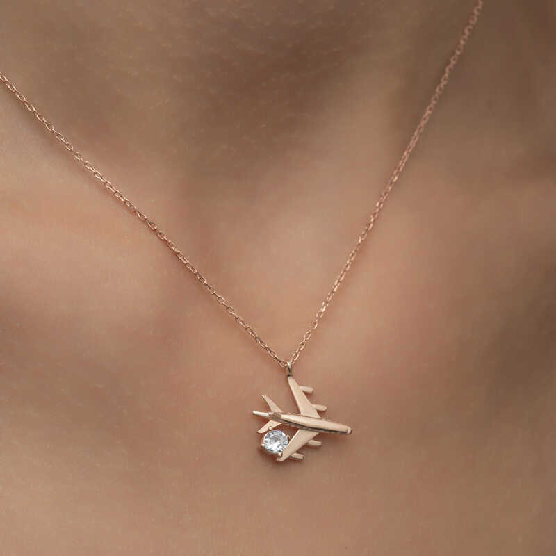 Gümüş Rose Tek Taşlı Uçak Kadın Kolye