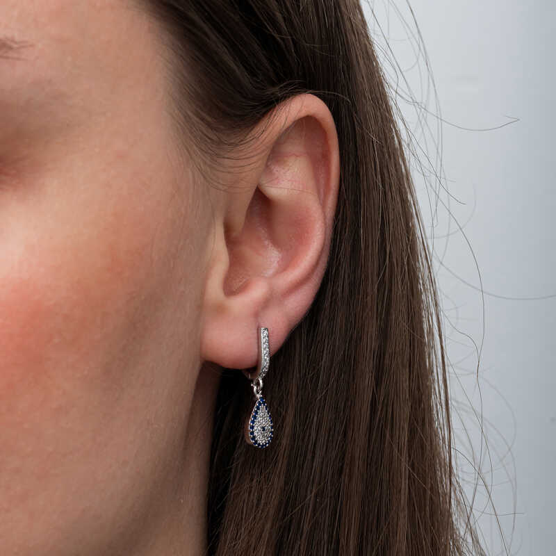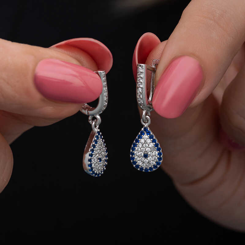 Gümüş Sallantılı Damla Nazar Kadın Küpe Nazar Küpeler Gümüş Sallantılı Damla Nazar Kadın KüpeNazar boncuğunu insanlar uzun yıllardan beri kötü bakıştan korunmak için kullanmışlardır. Kötü bakışların i