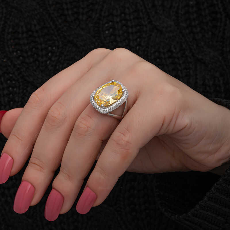Yüzyıllardır imajınızın simgesi olan takılar, birbirinden özel tasarım koleksiyonlarda sizlerle buluşuyor. Günlük hayatınızdan özel günlerinize kadar her anınızda yanınızda olan gümüş yüzük modelleriyle sizlerde tarzınızı yansıtın. Bu birbirinden farklı dikkat çekici tasarımlar sayesinde ruhunuza hitap eden yaratıcı özgünlüğü ortaya koymaya başlayın. Hayalinizdeki kombinleri gerçeğe dönüştürebileceğiniz gümüş yüzük çeşitleri ile girdiğiniz her ortamda ilgi çekici stiliniz ile ön plana çıkmak artık çok kolay… Sitrin taşlı kadın yüzük 925 ayar gümüşten imal edilmiştir, üzerine rodyum kaplama yapılmıştır. Gümüş yüzük modellerimizin tamamı el emeği ile üretilmiştir. Gümüş ve değerli taşlar nedeniyle belirtilen ortalama ürün ağırlığında ± %10 sapma olabilmektedir.