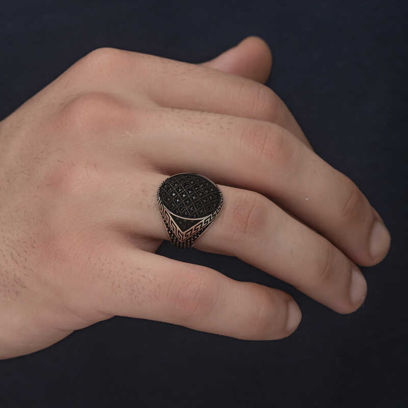 Gümüş Zirkon Siyah Taşlı Erkek Yüzük