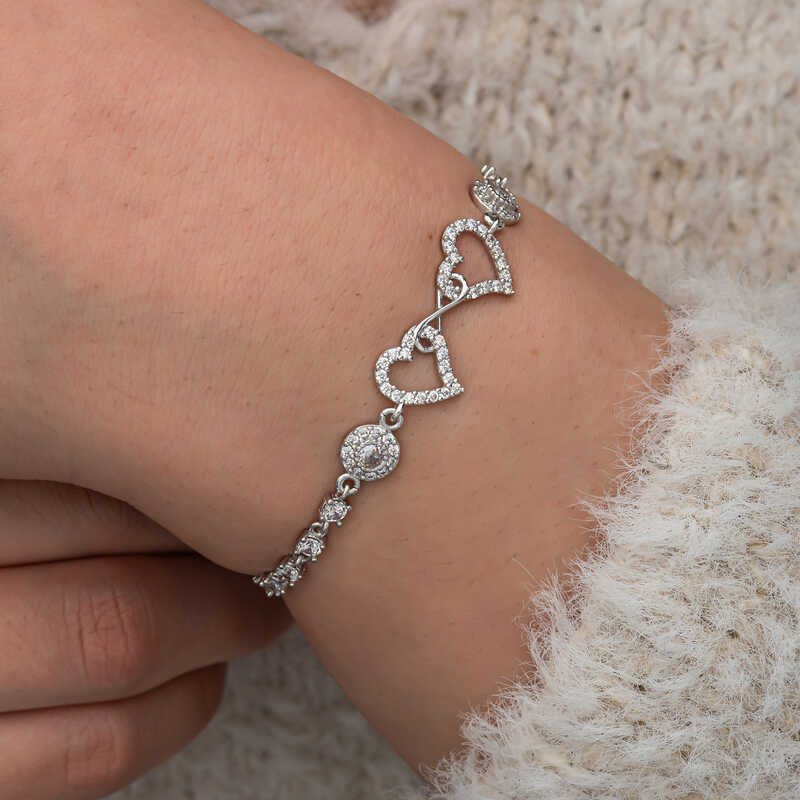 Gümüş Sonsuzluk İki Kalp Kadın Bileklik