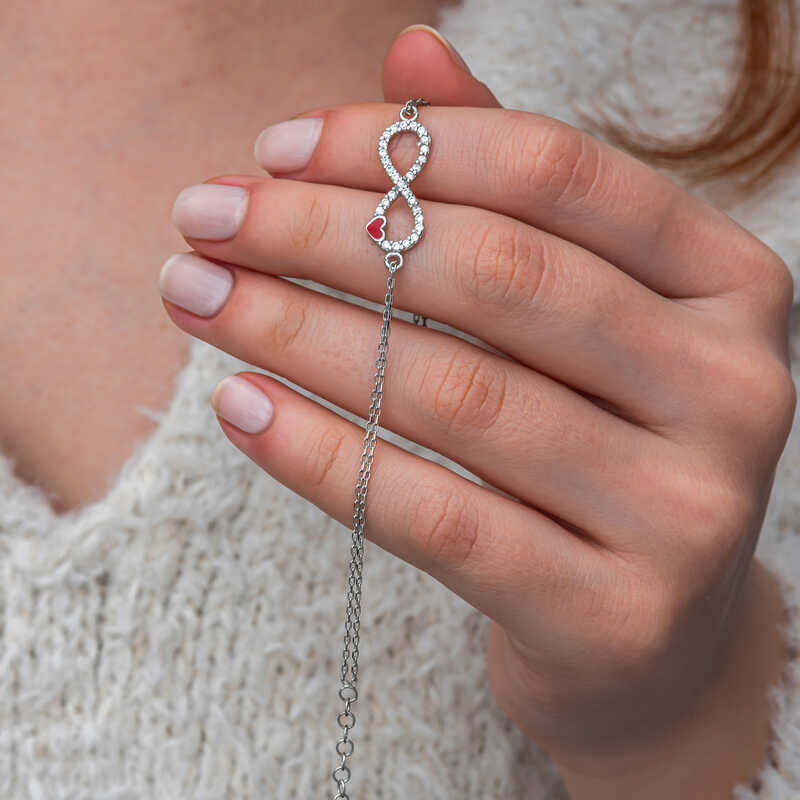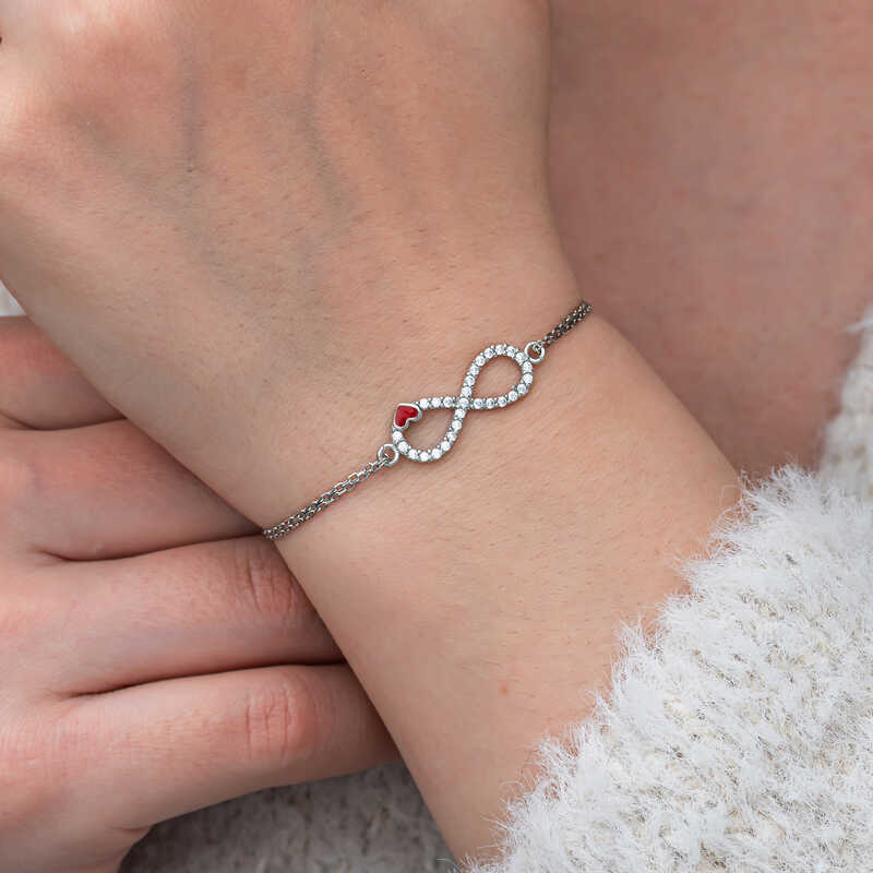 Gümüş Sonsuzluk Kırmızı Kalpli Kadın Bileklik