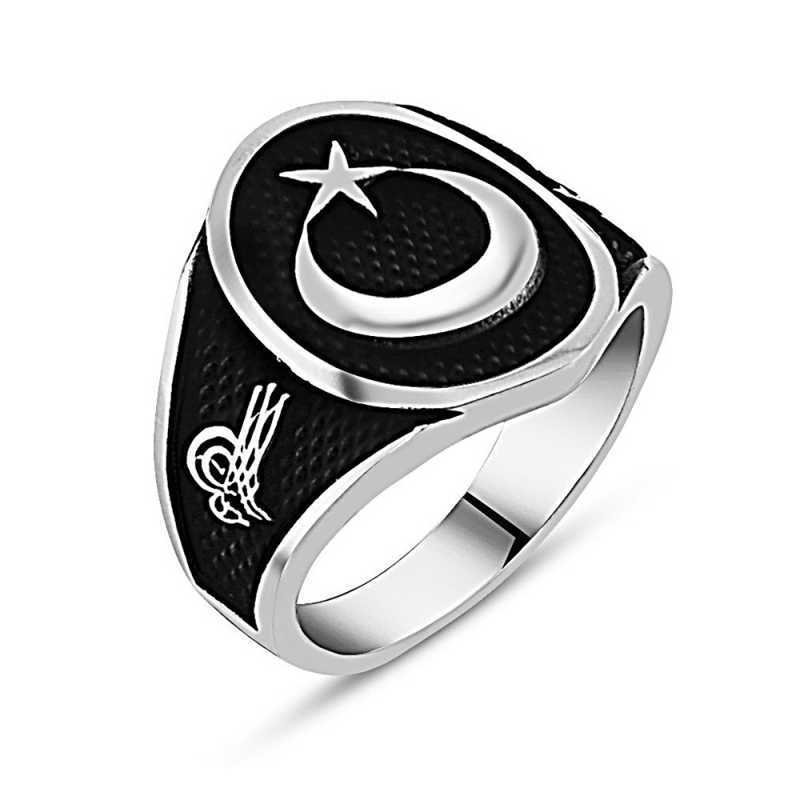 Gümüş Tuğralı Ay Yıldız Erkek Yüzük Ay Yıldız Yüzükler Gümüş Tuğralı Ay Yıldız Erkek YüzükHilal ve yıldız ya da ay-yıldız; hilal ve hilalin açık ucunda yer alan bir yıldız şeklinden oluşan antik sembo