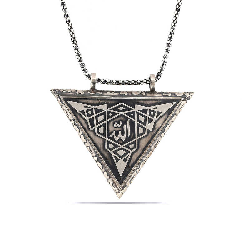 Gümüş Üçgen İçi Açılabilen Allah Muskalık Kolye