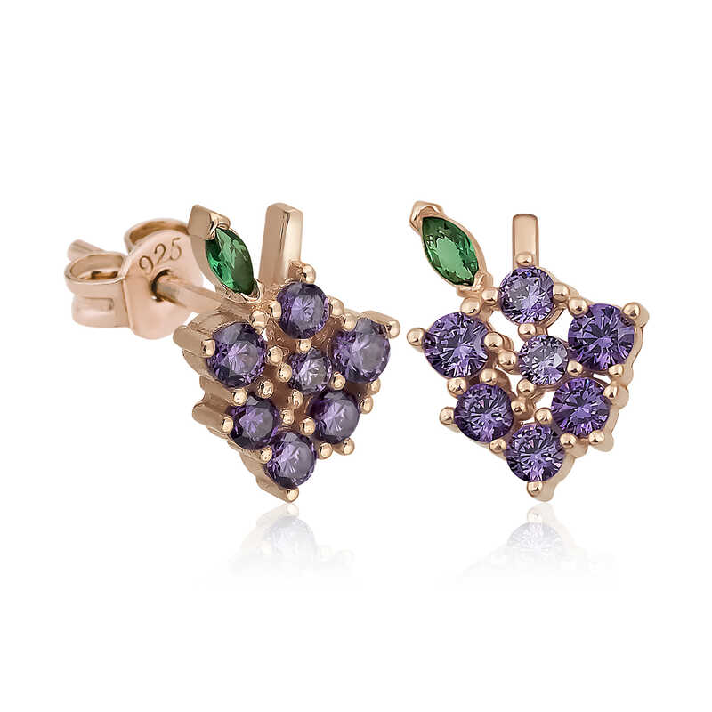 Gümüş Üzüm Figürlü Meyve Çivi Küpe