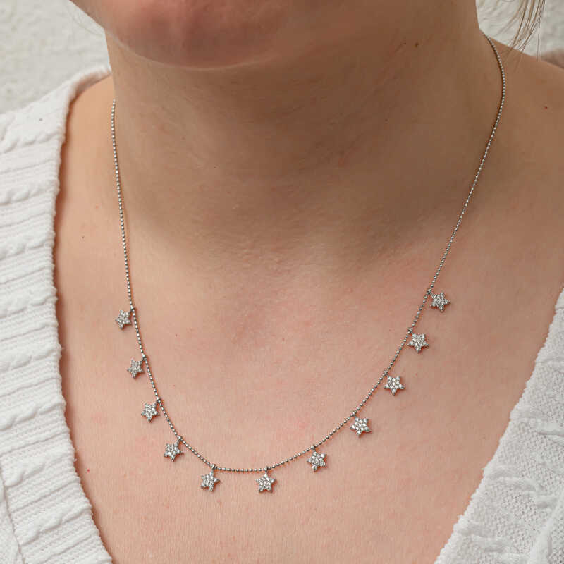 Yıldız, pek çok toplumda ve öğretide şans getirildiğine inanılan uğurlu bir semboldür. Venüs Gezegeninin enerjisini taşır. Venüs Gezegeni, aşk ve aşk enerjisinin de temsilcisidir. Bu şık yıldız şans kolye; doğum günü hediyesi, sevgililer günü hediyesi veya özel günlerde tercih edilebilecek mükemmel bir seçenektir. Yıldız tasarımıyla günlük hayatta rahatlıkla kullanabileceğiniz bu model 925 ayar gümüşten imal edilmiştir. Gümüş üzerine rodyum kaplama yapılmıştır. Rodyum kaplama yapılan gümüş şans kolye modelleri parlaklığını uzun süre muhafaza eder ve oksitlenmesi gecikir. Kolye üzerinde bulunan tüm taşlar zirkondur.Tüm gümüş bayan kolye modellerinde olduğu gibi gümüş şans kolye modeli de el emeği ile üretilmiştir. Gümüş ve değerli taşlar nedeniyle belirtilen ortalama ürün ağırlığında ± %10 sapma olabilmektedir.