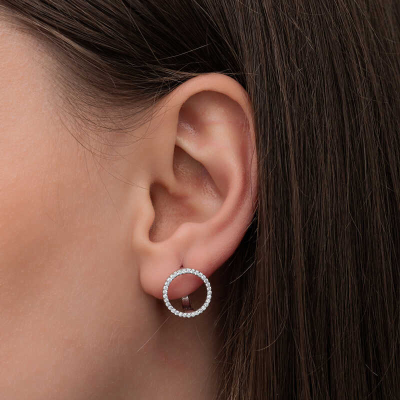 Gümüş Yuvarlak Kadın Küpe Taşlı Küpeler Gümüş Yuvarlak Kadın KüpeŞıklığınızı zarif küpelerle tamamlayın. Beyaz zirkon taşı kullanılarak hazırlanan yuvarlak desenli küpe, şık tasarımı ile aklınızı başı