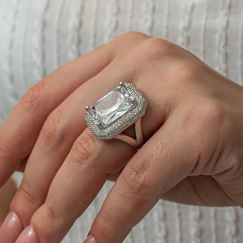 Kendine özen gösteren, şık olmayı benimseyen şehirli kadınların tercihi gümüş takı modelleri arasında en çok tercih edilen gümüş yüzüklerdir. Modernden klasiğe geniş bir yelpazede birbirinden şık gümüş kadın yüzük modelleri siz ve sevdikleriniz için özel olarak hazırlandı. 925 ayar gümüşten imal edilen zirkon taşlı kadın yüzük modeli üzerinde bulunan beyaz taşlar zirkondur. Yüzük üzerine rodyum kaplama yapılmıştır. Rodyum kaplama yapılan gümüş kadın yüzük modelleri parlaklığını uzun süre muhafaza eder, oksitlenmesi gecikir. Kadın yüzük modellerinin tamamında olduğu gibi gümüş zirkon taşlı kadın yüzük modeli de el emeği ile üretilmiştir. Gümüş ve değerli taşlar nedeniyle belirtilen ortalama ürün ağırlığında ± %10 sapma olabilmektedir.