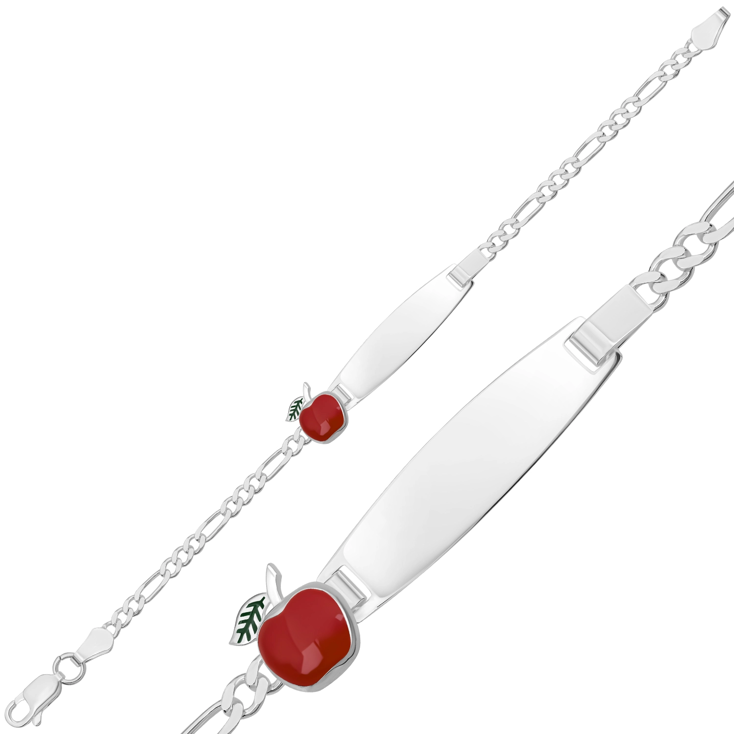 Kişiye Özel Kırmızı Elma Figürlü Gümüş Çocuk Künyesi
