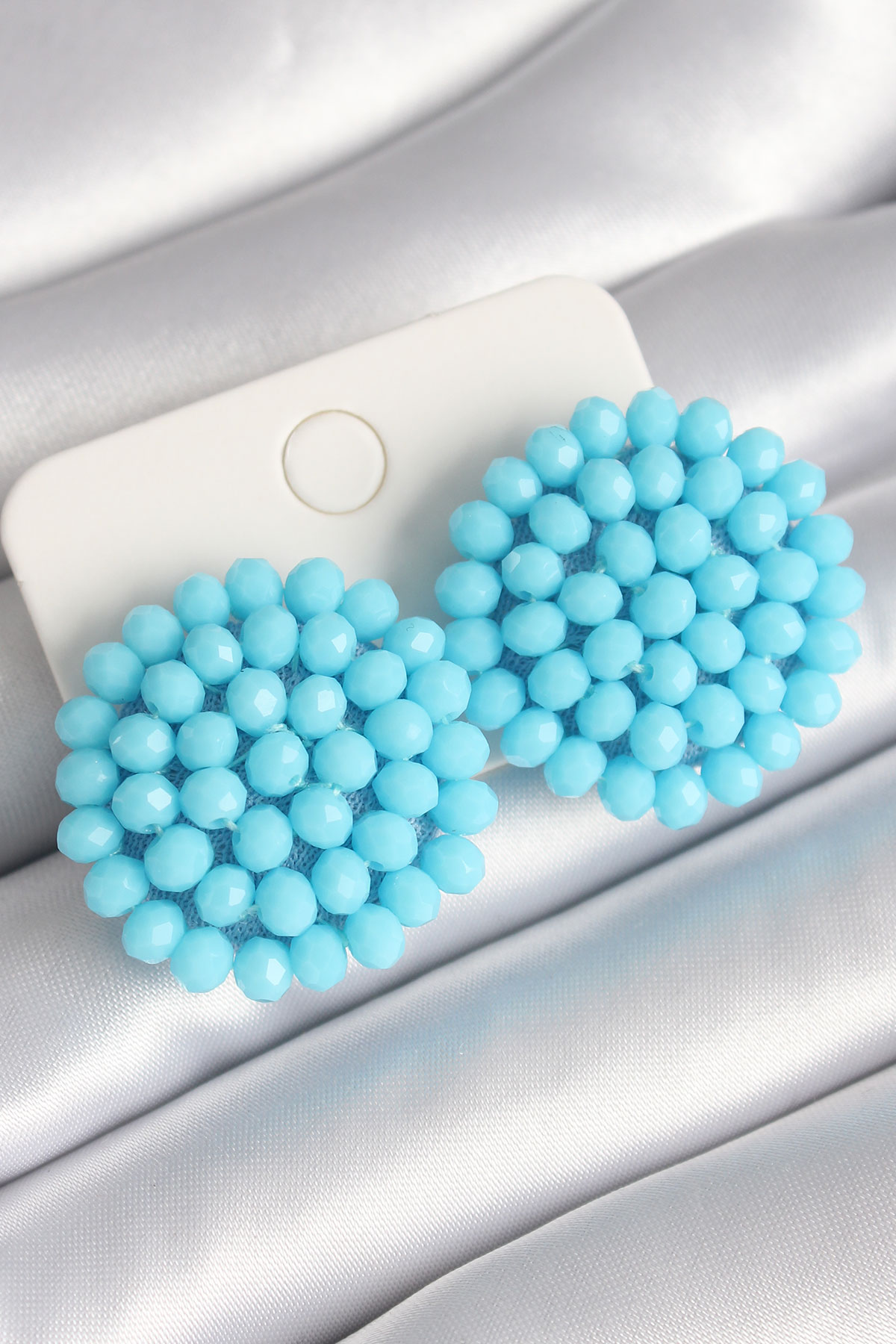 Mavi Renk Kristal Düğme Model Kadın Küpe
